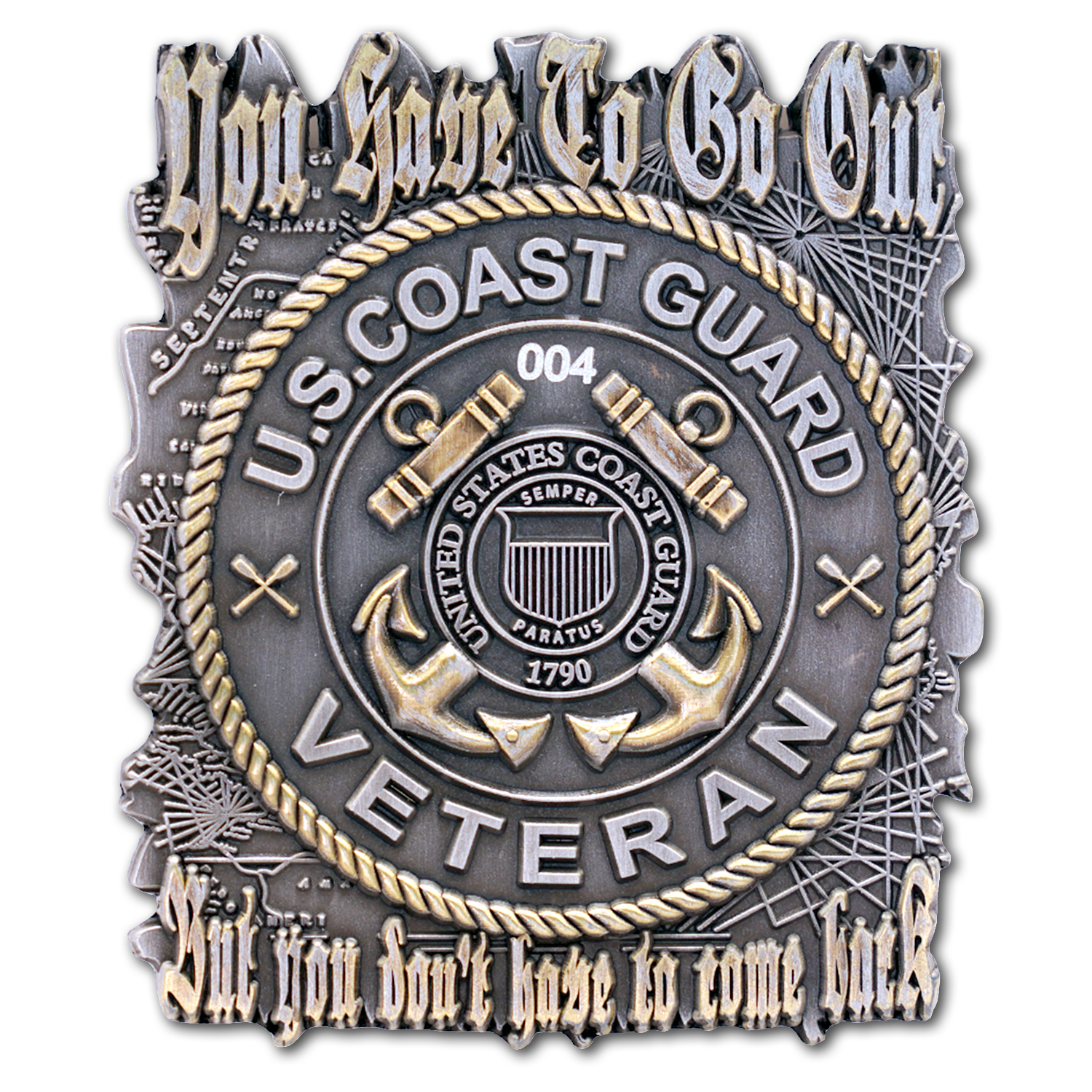 Becoming a leader in state-of-the-art challenge coins means having the experience and creativity and drive to perform at a level others seldom attain. Just like the USCG and Auxiliary and some of its challenges protecting our coastlines, rescuing a boat and its crew or performing humanitarian work, every leader must meet the challenges and demands it encounters. US Coast Guard coins are no different. How does the special coin shape make sense? Should we go 2d or 3d with the design and do we want full color or a more subdued tactical look. The You Have To Go Out Coast Guard Magnum Challenge Coin has the best because it is 3d on both sides, contains dual metal highlights and accents, cut to a depth of 4mm which makes it loud enough to be heard 3 blocks away when you slam it down on the bar!