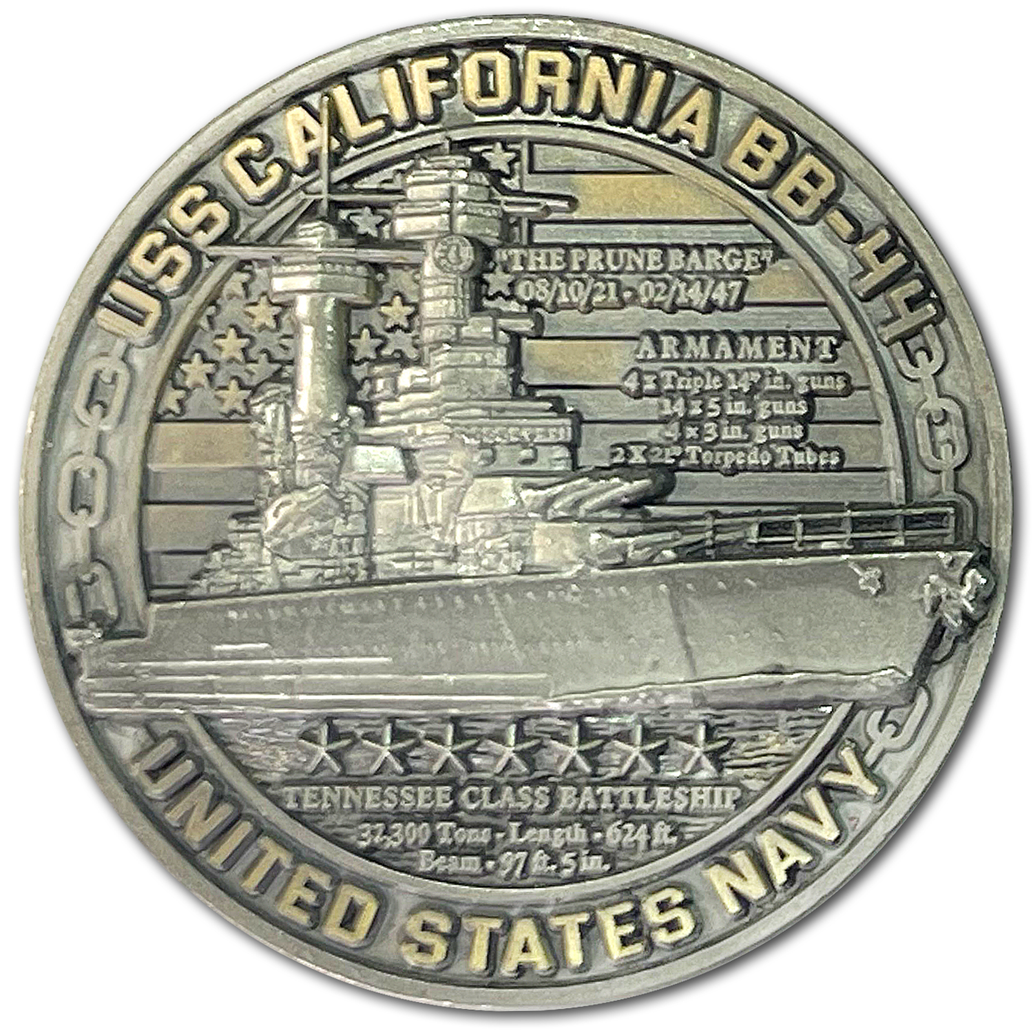 USS California BB-44 Battleships of Pearl Harbor Collectible Challenge Coin Details