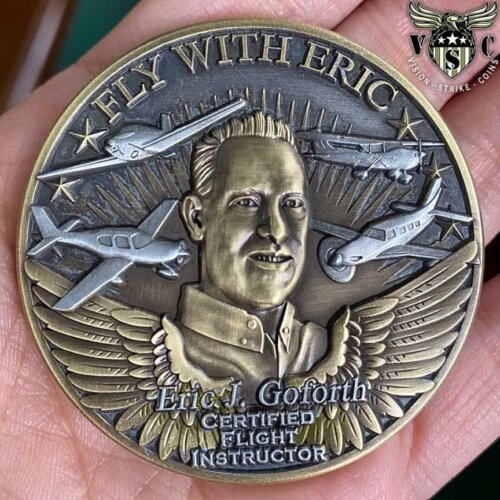 More than just a piece of paper and a certificate. Own this Flight School Fly With Eric Pilot Rating Engraved Coin and have your memory of taking flight and have it forever memorialized in collectible coin form. With the ability to have your custom text and information displayed on a coin like this Flight School Fly With Eric Pilot Rating Engraved Coin you can show others in your display case the dates and information when you first became a pilot. The day you left the ground and took to flight will be the day you will remember forever and when you have a stylish pilot rating engraved coin you have a reminder of that incredible day of accomplishment.